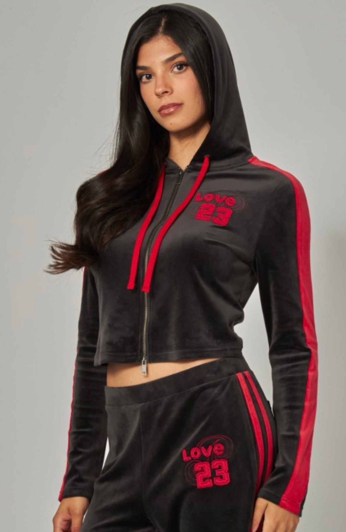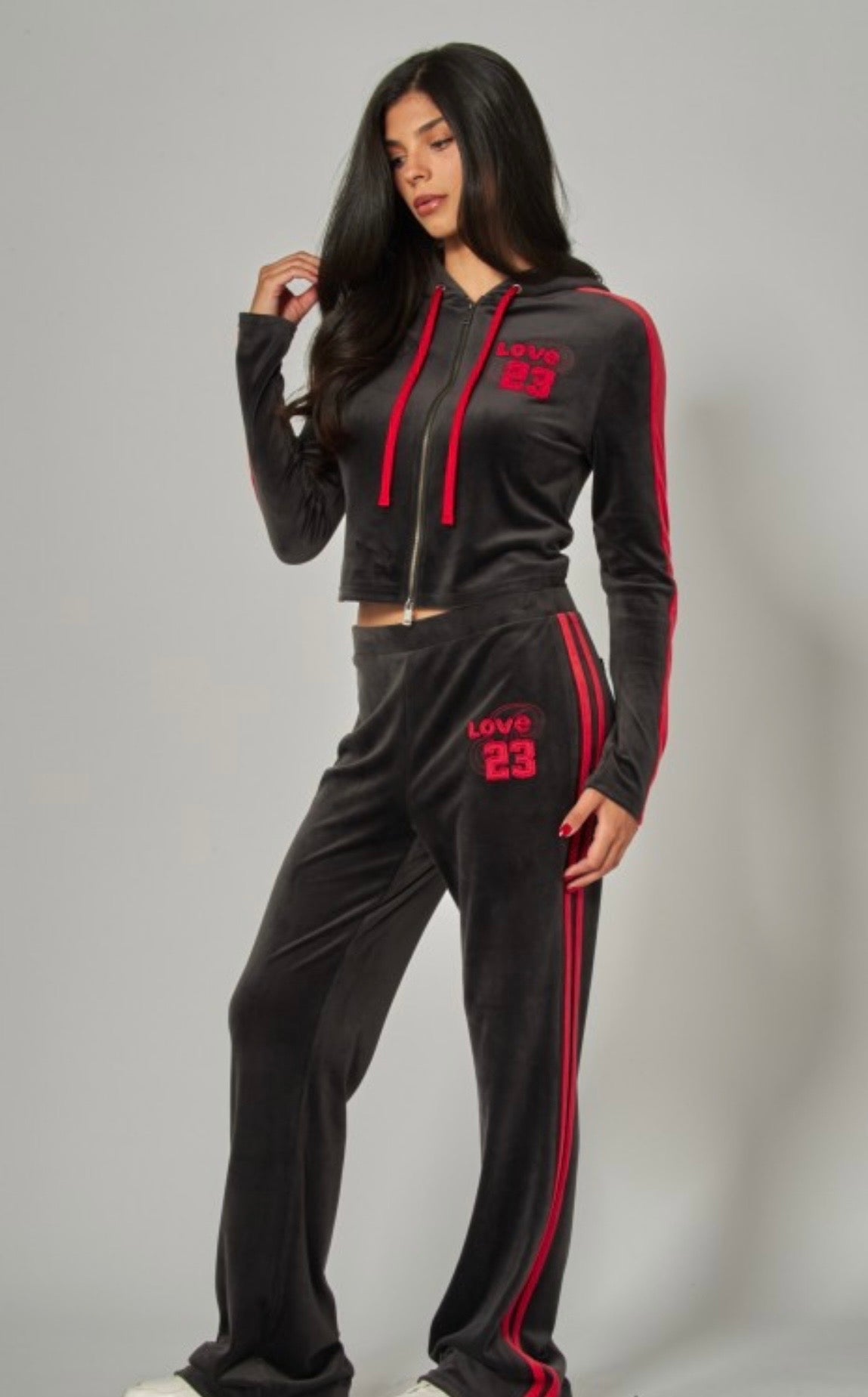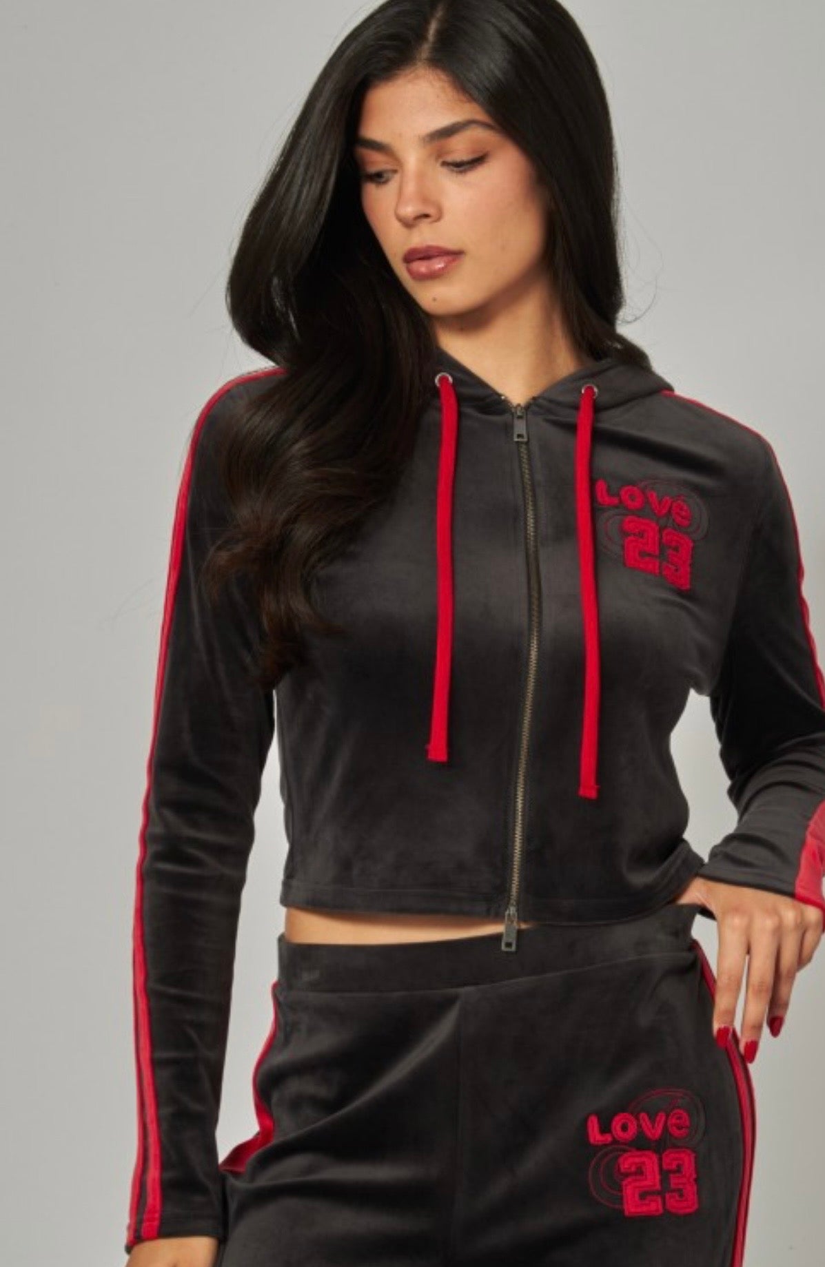 Vintage sporty zip up hoodie velour set